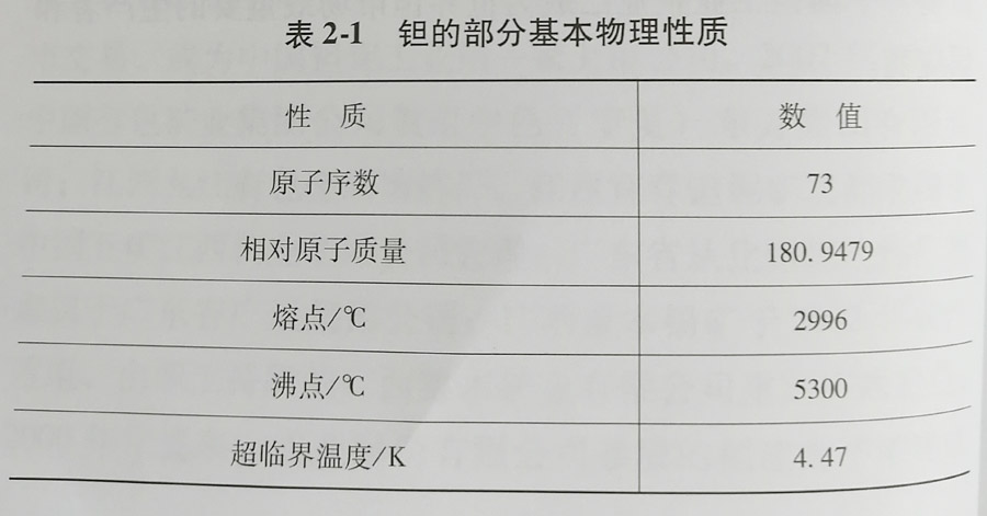 具有熔點高、蒸汽壓低、冷加工性能好、化學穩定性高、抗液態金屬和酸堿腐蝕能力強、表面氧化膜介電常數大等一系列優異特點,是重要的現代功能性材料。